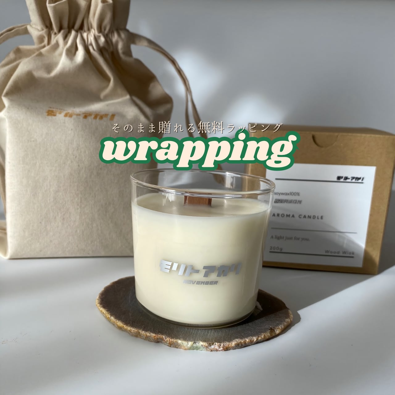 A. すべてのキャンドルをギフト仕様でお包みしてお届けしています。大切な方への贈りものにもおすすめです。